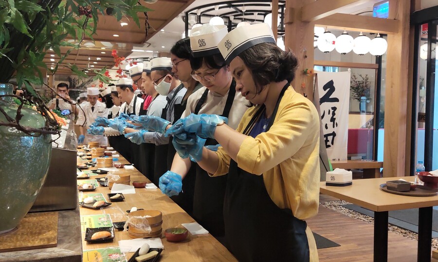 Ngày 25/10, Công ty TNHH Dịch vụ Du lịch Sông Hàn phối hợp với tỉnh Kagoshima của Nhật Bản tổ chức hoạt động du lịch khám phá trực tuyến nhằm mang đến cho du khách những trải nghiệm mới. Chẳng hạn như núi lửa Sakurajima, đảo Yoronjima, vườn truyền thống Sangenen hay rừng nhiệt đới đảo Yakushima …- Du lịch trực tuyến có giá 500.000 đồng / người và sẽ được mở bán từ ngày 14 đến 28-11. Với mỗi nhóm 7-10 khách, đầu bếp người Nhật sẽ mời du khách chế biến sushi. Ảnh: Nguyễn Nam – Tour trực tuyến còn mang đến “trải nghiệm thực tế”, du khách có thể tham gia lớp học làm sushi do đầu bếp người Nhật hướng dẫn, hay thư giãn trong bồn tắm suối nước nóng và tận hưởng khoáng chất của núi lửa Sakurajima. Và dùng bữa trưa tại nhà hàng Chiyoda Sushi.